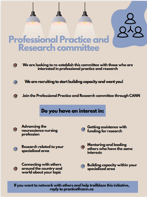 Empowering nurses to provide the highest quality neuroscience nursing care to all Canadians. The Canadian Association of Neuroscience Nurses (CANN) sets standards of practice and promotes continuing professional education and research. Members collaborate with individuals, families, interdisciplinary teams and communities to prevent illness and to improve health outcomes for people with, or at risk for, neurological disorders.